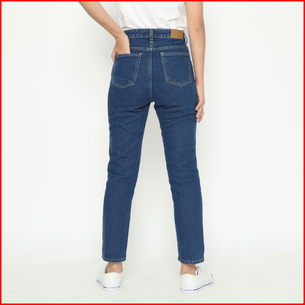 Esrocte Isla Pants Celana Boyfriend Jeans High-waist Wanita Navy Hitam Biru Muda 2638