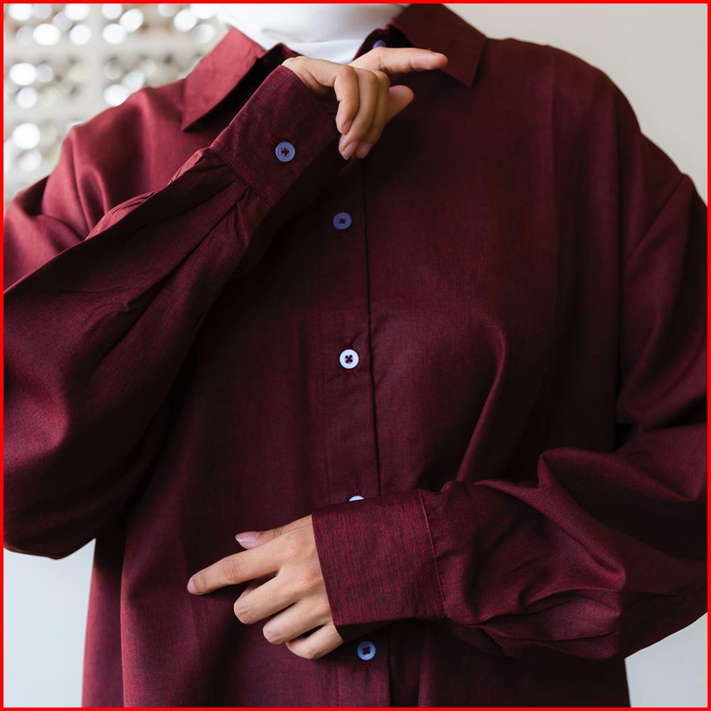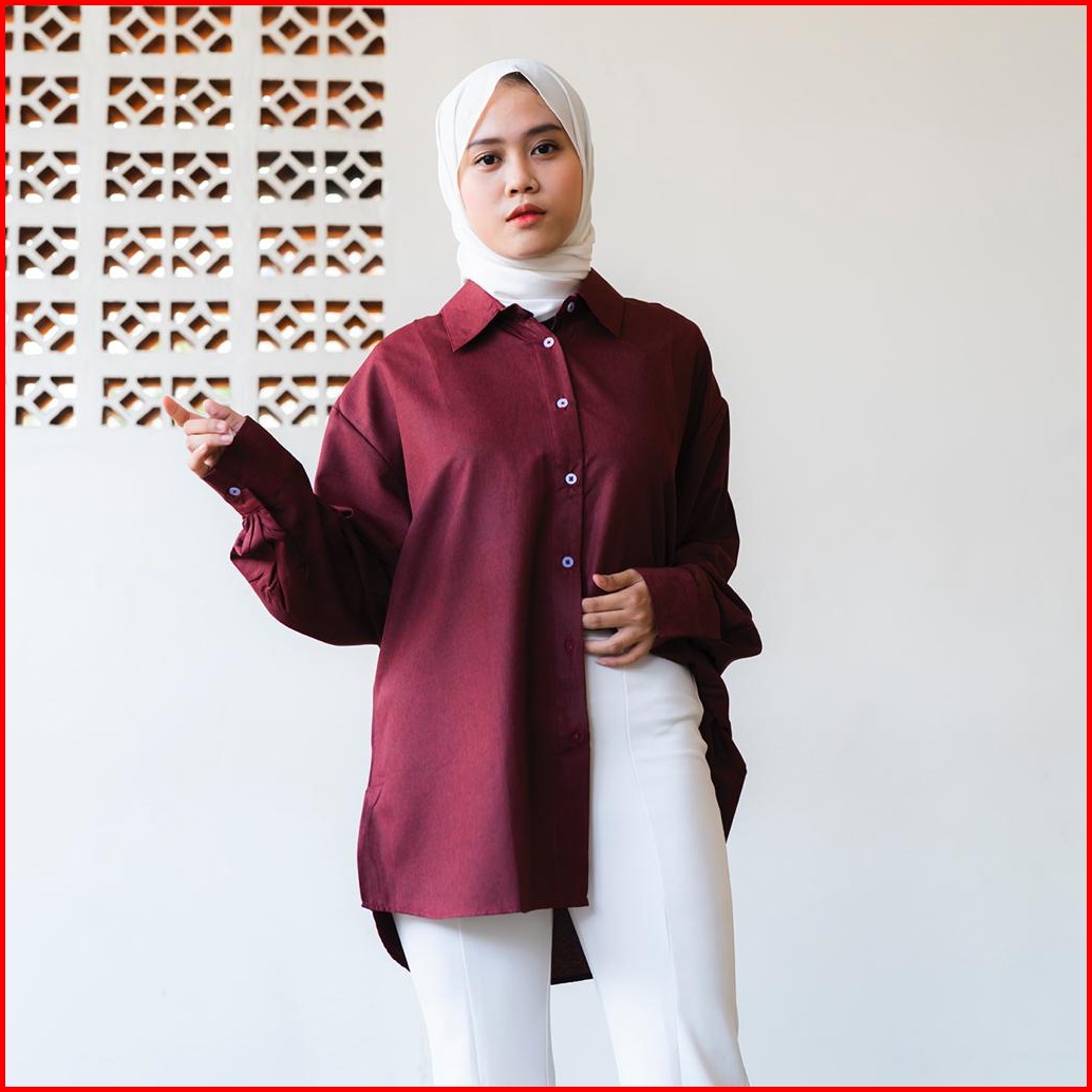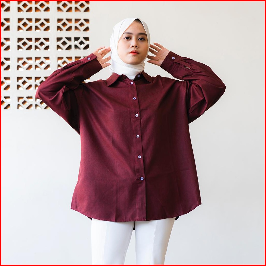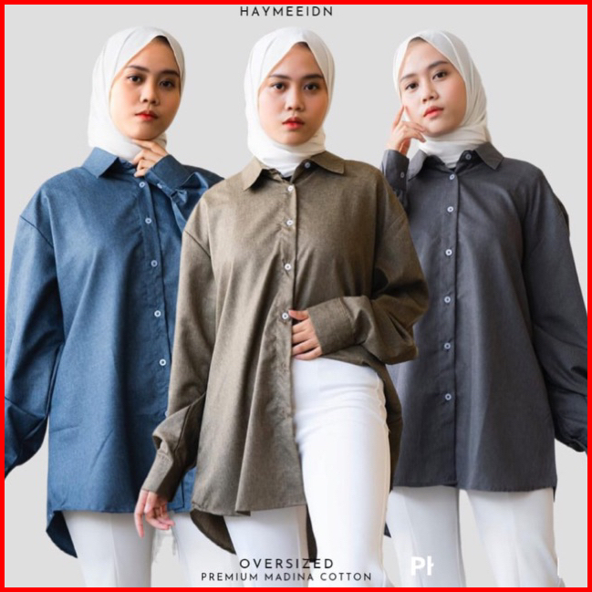 Haymeeidn - Kemeja Oversize Polos Wanita Baju Kantor Formal Cewek Atasan Kerja Cewe Katun Madinah