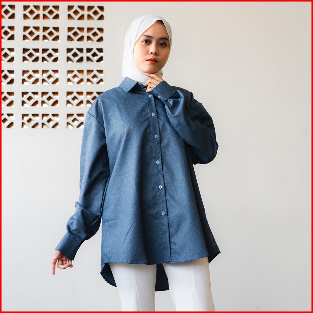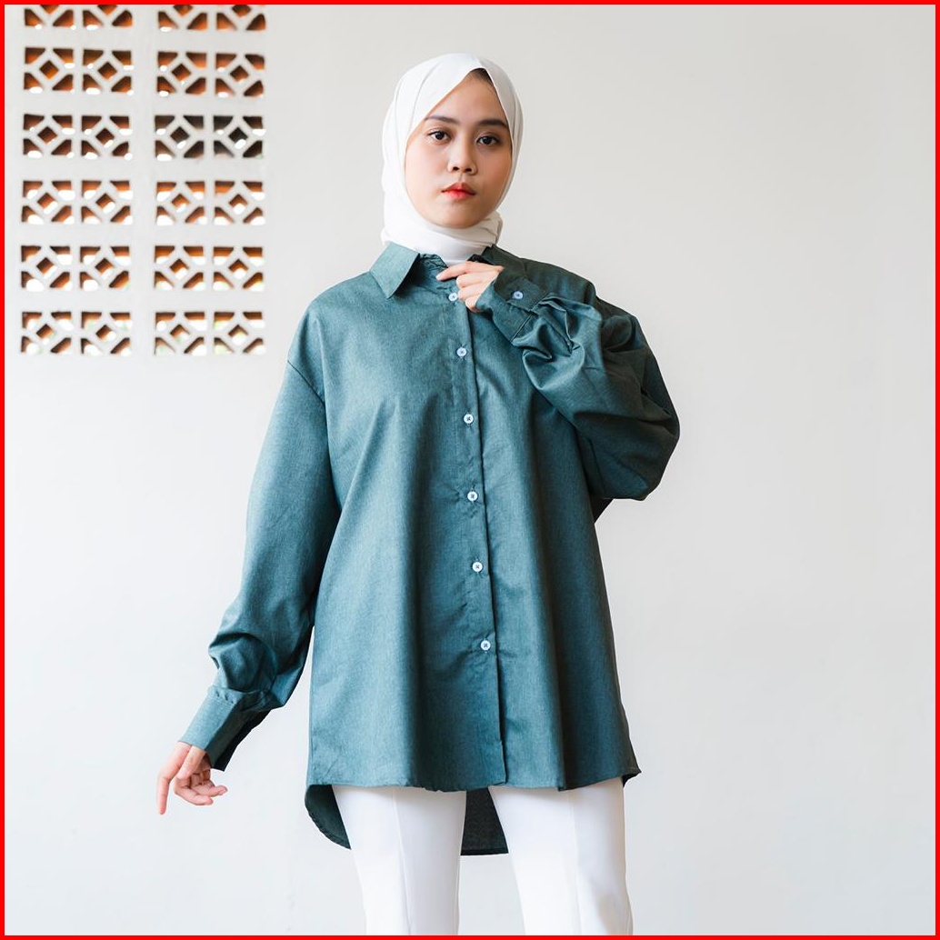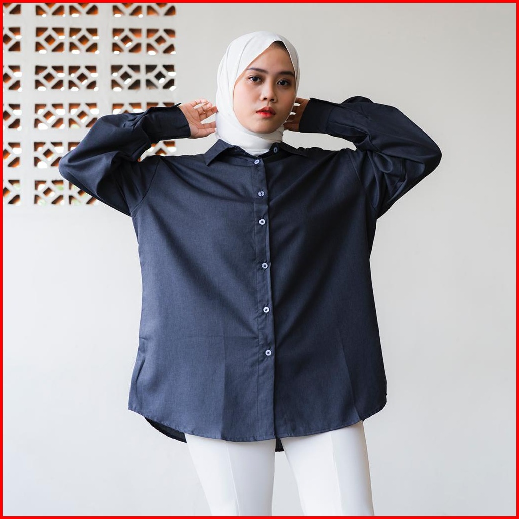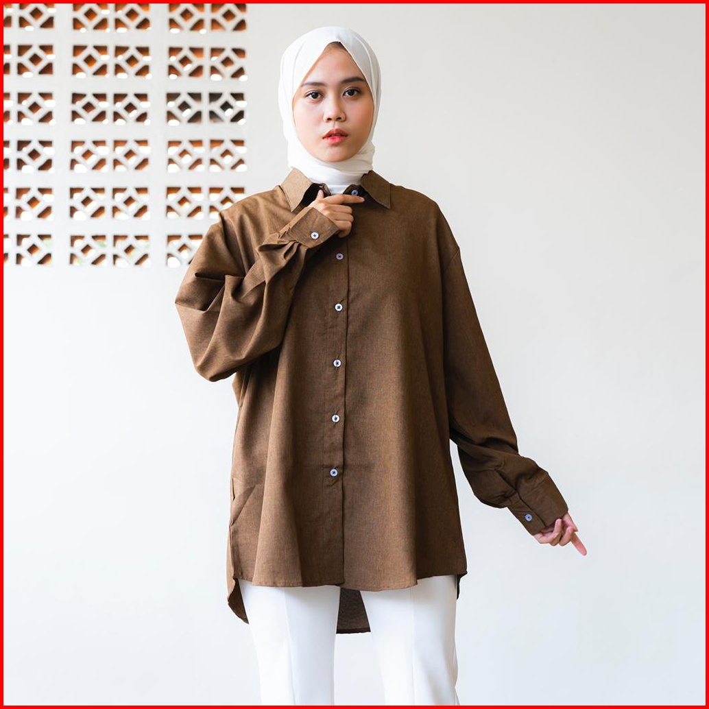 Haymeeidn - Kemeja Oversize Polos Wanita Baju Kantor Formal Cewek Atasan Kerja Cewe Katun Madinah