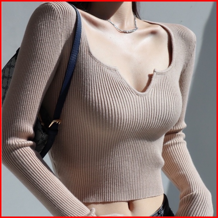Misshoneyscoop Neck Long Sleeve Crop Top 7287 S M L
