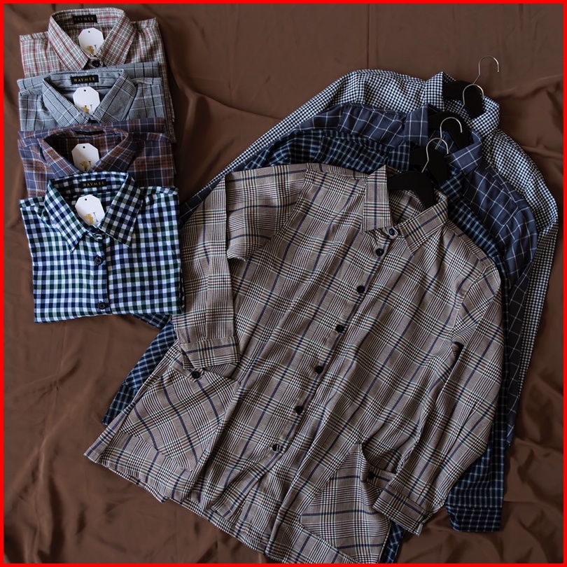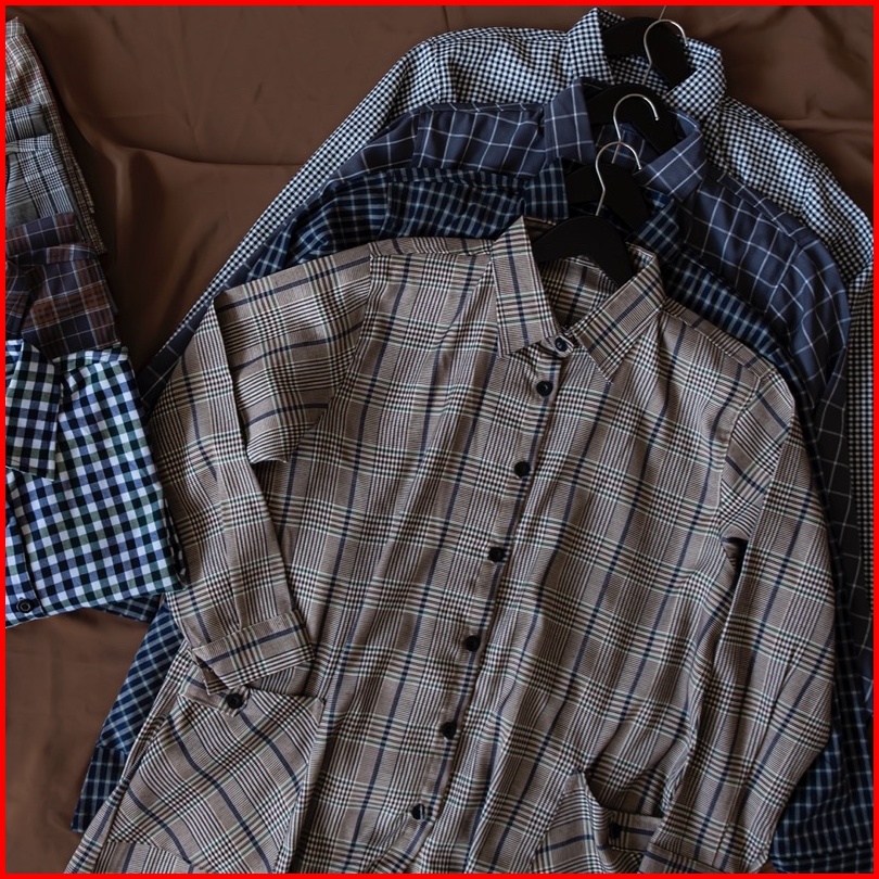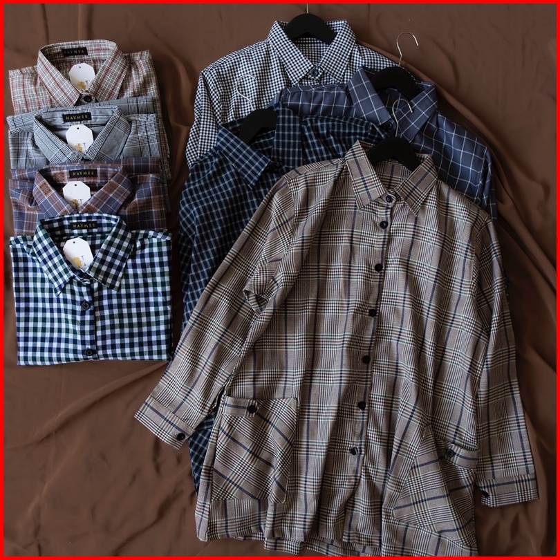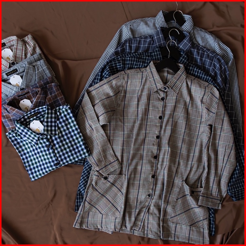 Haymeeidn - Tunik Flanel Wanita Atasan Tunik Flanel Cewek Atasan Muslimah Wanita Motif Kotak-kotak
