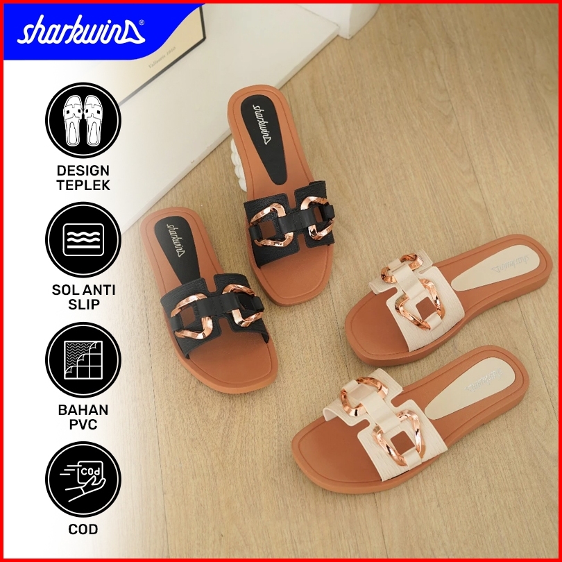 Sharkwin Sandal Perempuan Jelly Modern Daily Fashion Slip-on Flat Teplek Wanita Murah Slop Sepatu Pvc Anti-slip Slippers
