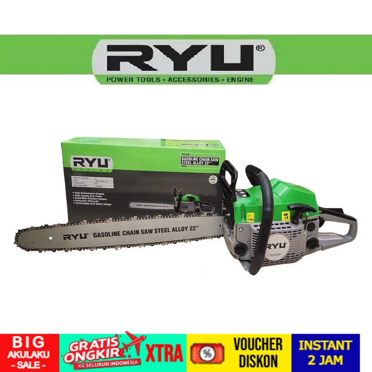 TANPA DP RYU GASOLINE CHAIN SAW chainsaw 2 tak RGS 22 inch RGS22 engine kayu dahan Gassoline / Gasoline Chainsaw Steel