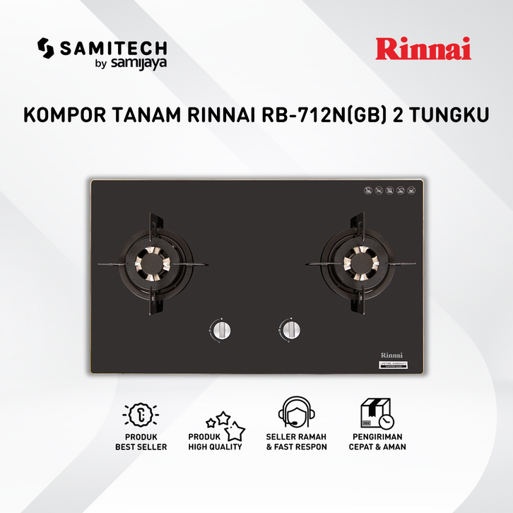 Kompor Tanam 2 Tungku Rinnai RB-712N GB Kaca - Kompor Rinnai Tanam 2 Tungku Kaca RB-712N GB Garansi Resmi