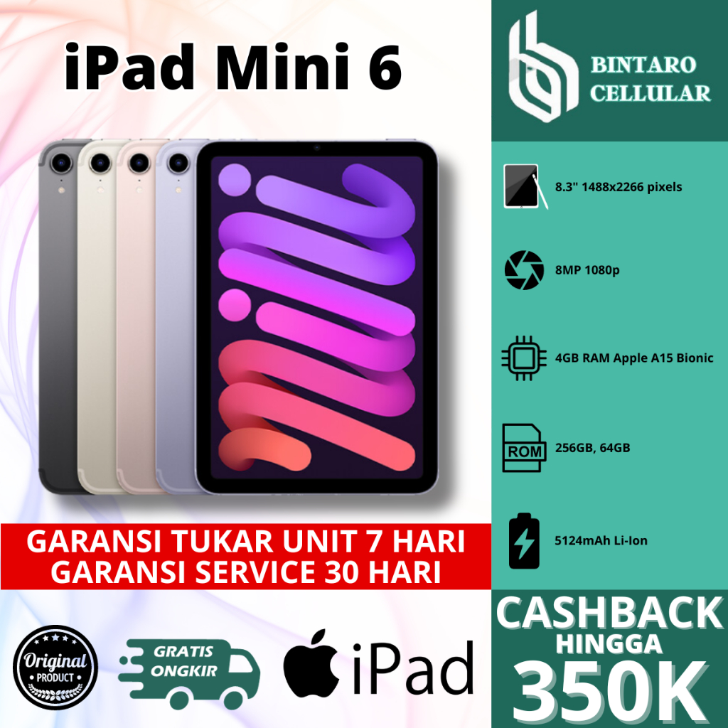 IPAD MINI 6 256GB 64GB SECOND LIKE NEW WIFI ONLY WIFI CELL GREY PINK PURPLE STARLIGHT