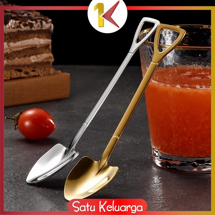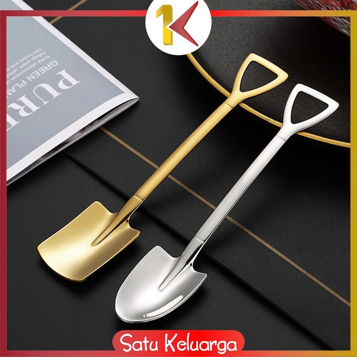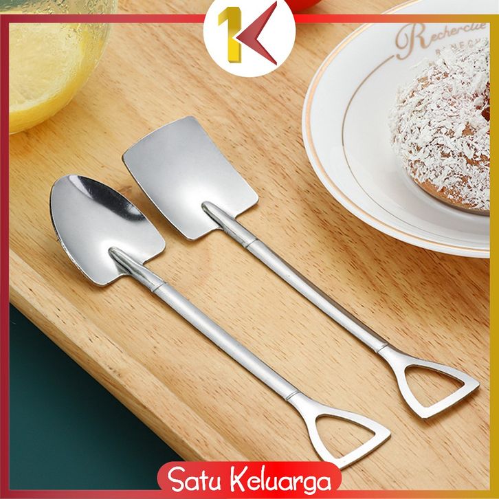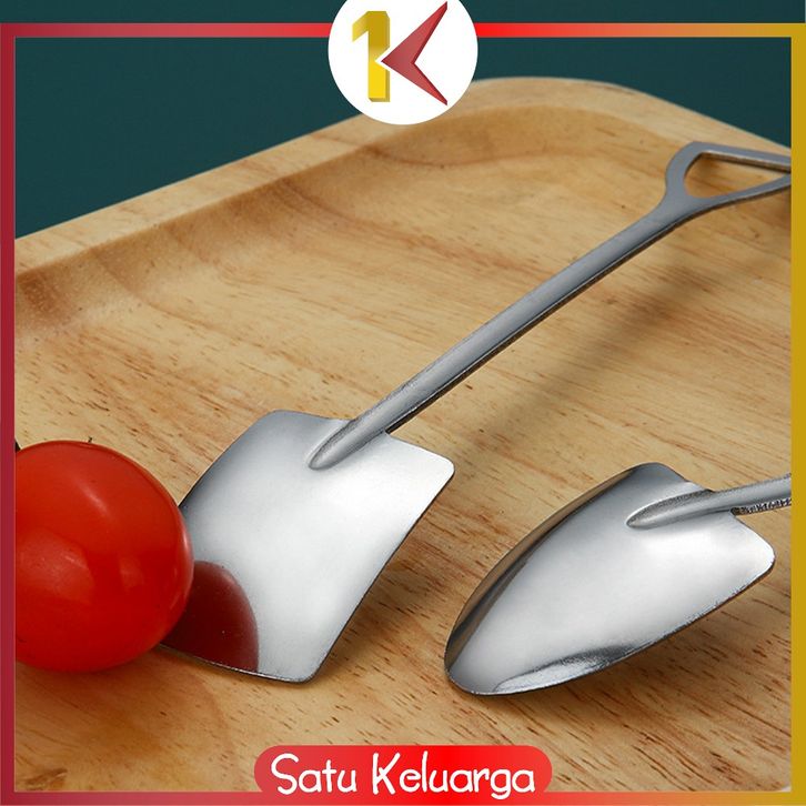 SK-C1006 Sendok Dessert Bentuk Sekop Besi Stainless Baja Anti Karat / Sendok Puding Kue Skop Aesthetic Lucu Unik Sendok