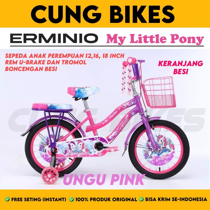 SEPEDA ANAK PEREMPUAN MINI UKURAN 12 16 18 INCH ERMINIO KUDA PONI LITTLE PONY KERANJANG