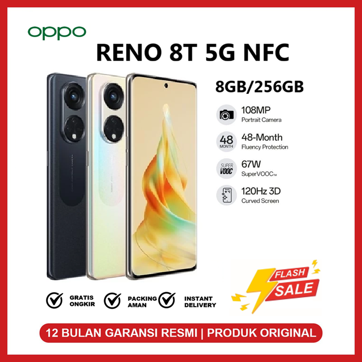 HP OPPO RENO 8T 5G 8/256GB GARANSI RESMI NFC Snapdragon™ 695 Kamera utama 108MP