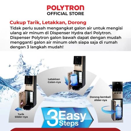 POLYTRON PWC 600 DISPENSER AIR PANAS DINGIN GALON BAWAH HEMAT DAYA WATER BOTTON LOADING LOW WATT ORIGINAL GARANSI RESMI