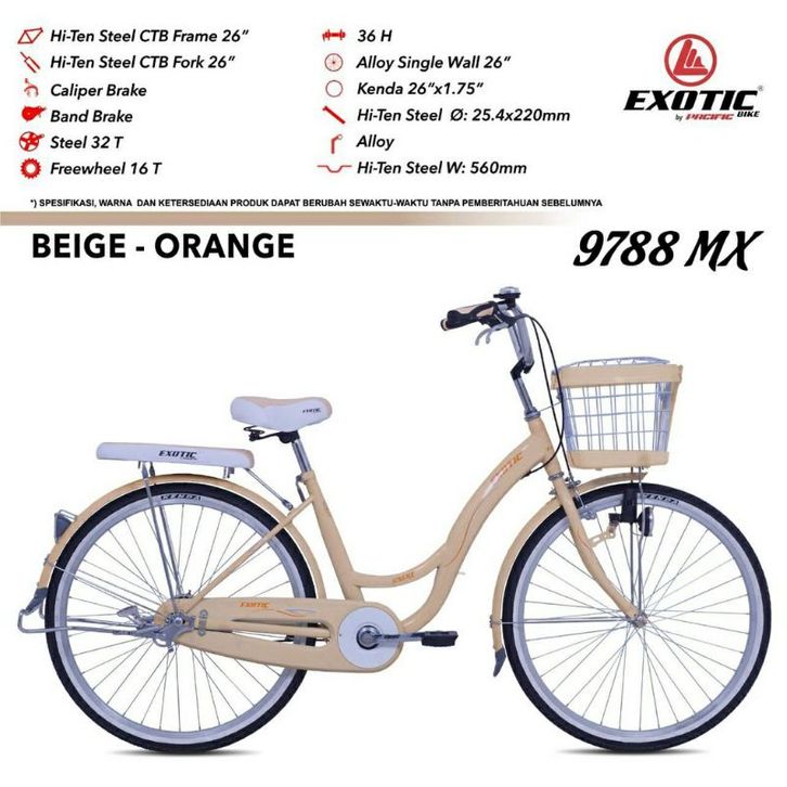 SEPEDA MODEL TERBARU MINI KERANJANG DEWASA PEREMPUAN (GRATIS PACKING BUBBLEWARP) 26INCH EXOTIC ET-9788 MX