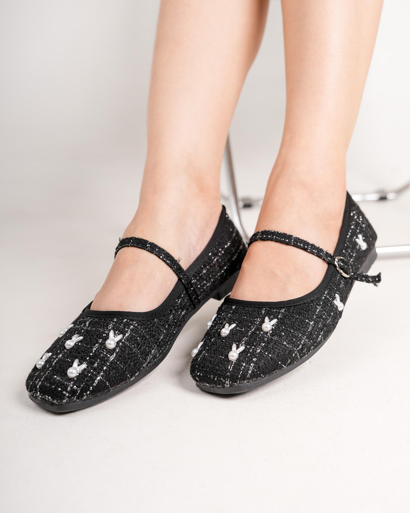 Rabbit Knit Flat Shoes Elastic Sepatu Knit Wanita 5423 (35 - 40)