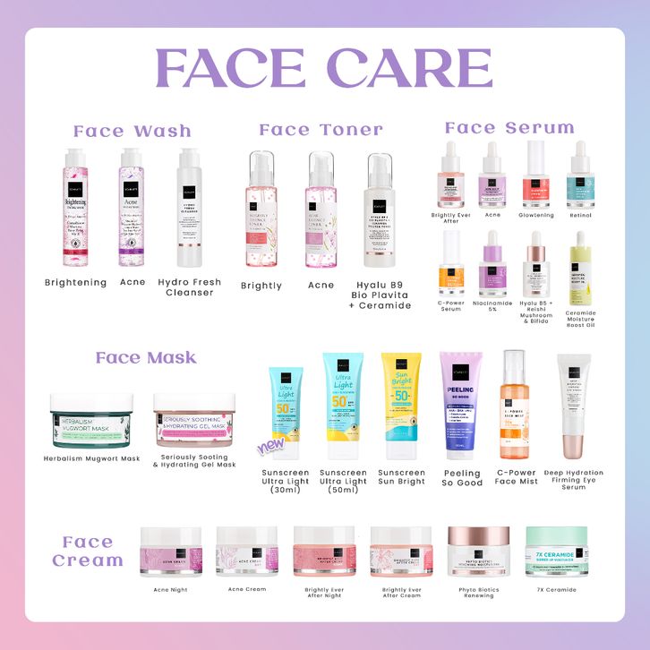 SCARLETT Face Care Satuan ( Facial Wash, Toner, Serum, Moisturizer, Face Mist, Peeling gel, Sunscreen, Face Mask