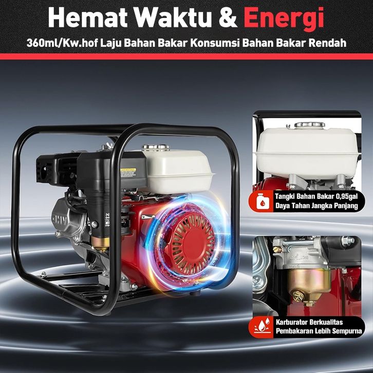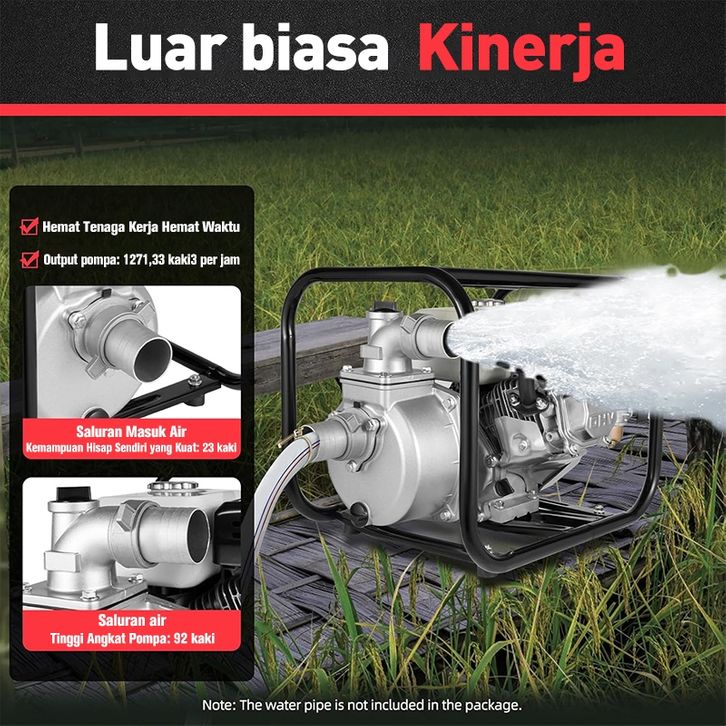 REAIM 1/2/3inch Water Pump Bensin Pompa Self-priming 7.5HP, Pompa Air Pertanian Daya Tinggi 4 tak, Pompa Air Udara Bensi