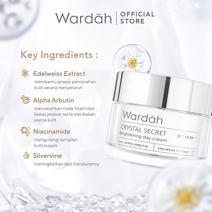 WARDAH CRYSTAL SECRET DAY CREAM ALPHA ARBUTIN + 5% NIACINAMIDE ORIGINAL OFFICIAL STORE