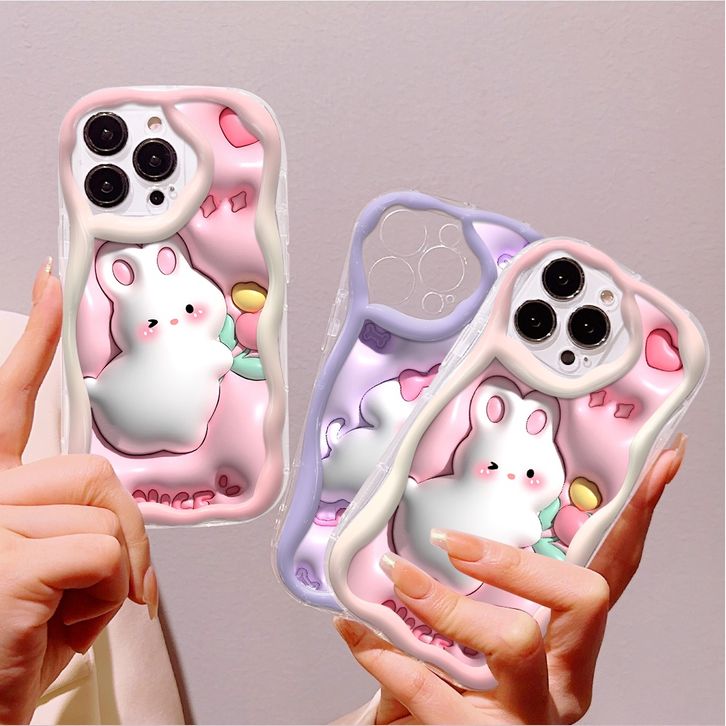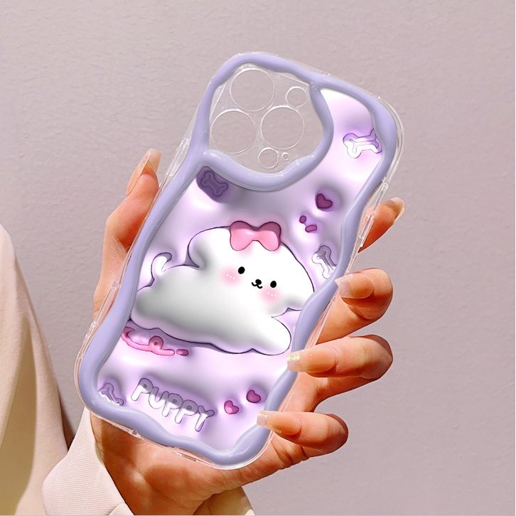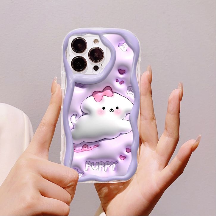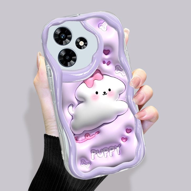 Infinix Hot 30 Untuk Phone Case Softcase Casing Cute Cartoon Cloud Puppy Rabbit Love Heart Pola Cream Wavy Edge Silicone