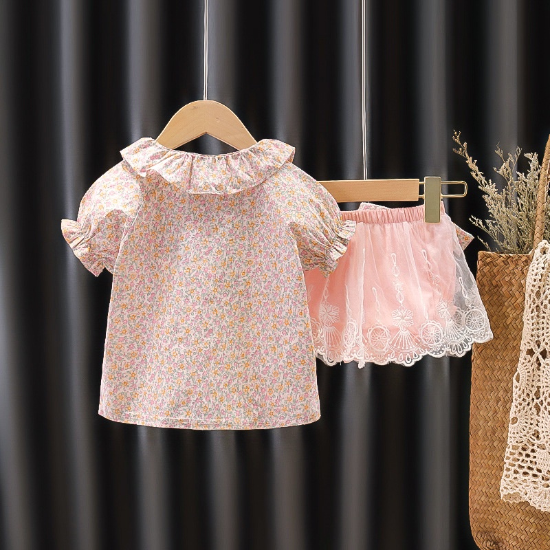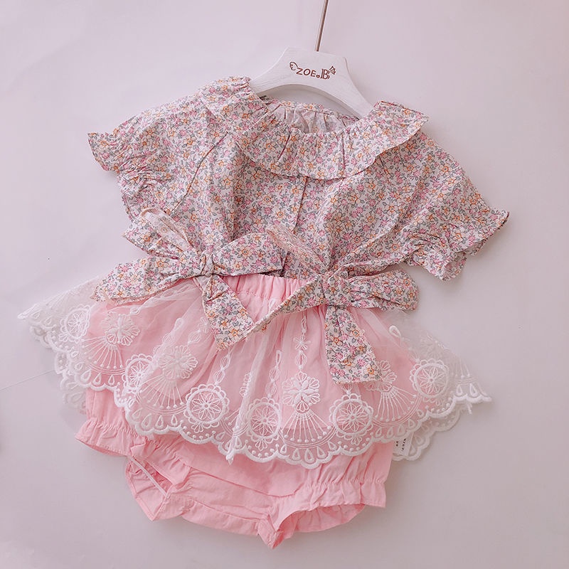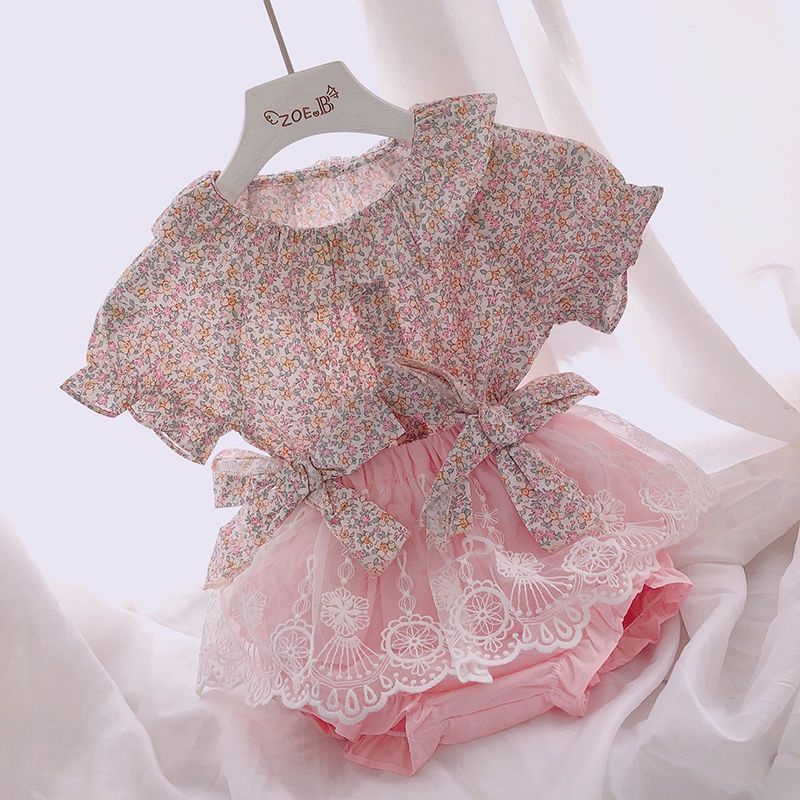 0-4 TAHUN GADIS SETELAN MUSIM PANAS ASING GADIS BAYI 100 HARI TUA BUNGA RUSAK PASTORAL PUTRI GAYA DUA POTONG