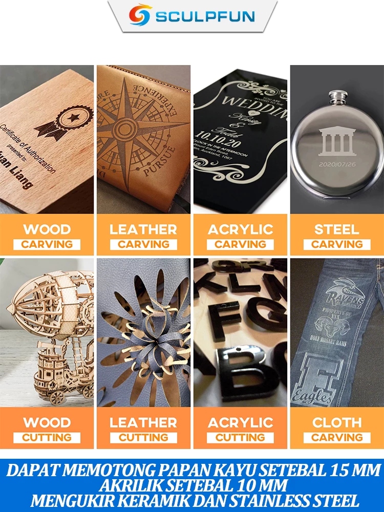 3D PRINTER SCULPFUN S9 AUTHENTIC LASER CUTTING GARANSI 2 TAHUN LASER ENGRAVER 5W MESIN UKIRAN 3D PRINTER ORI SCULPFUN S9