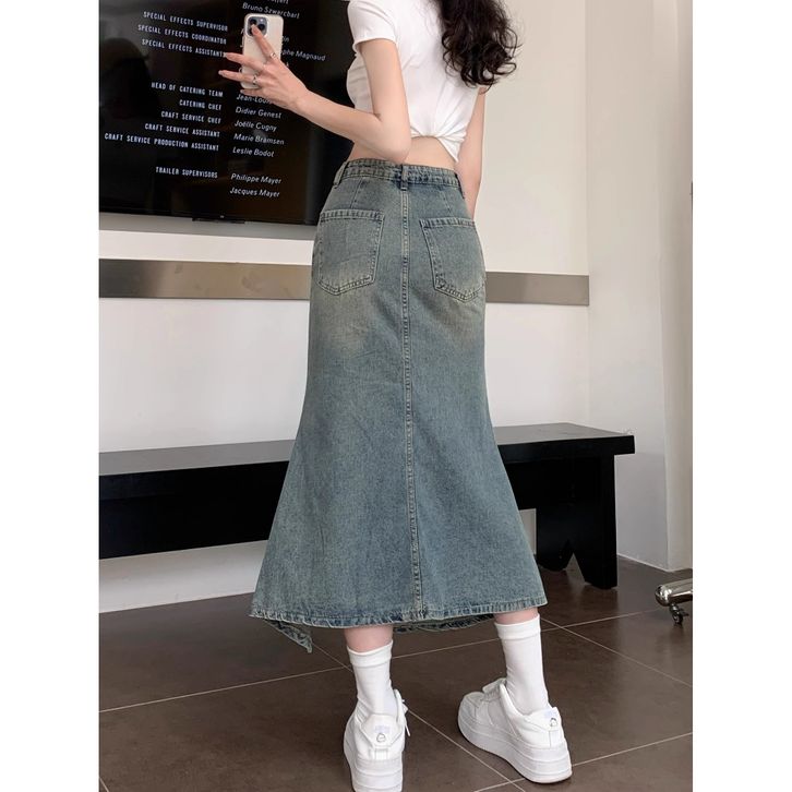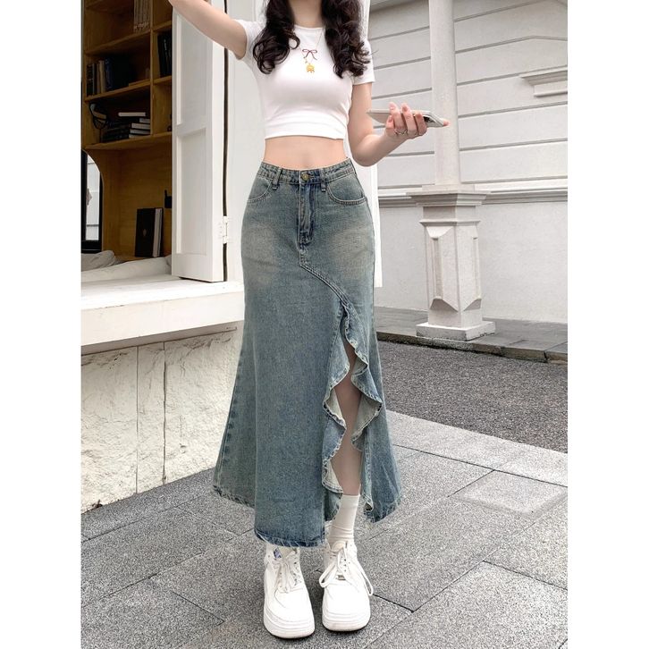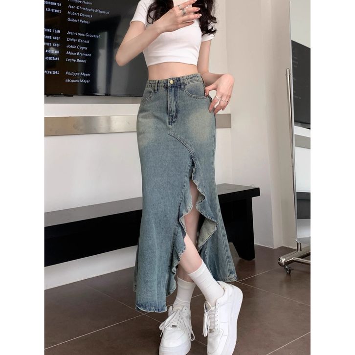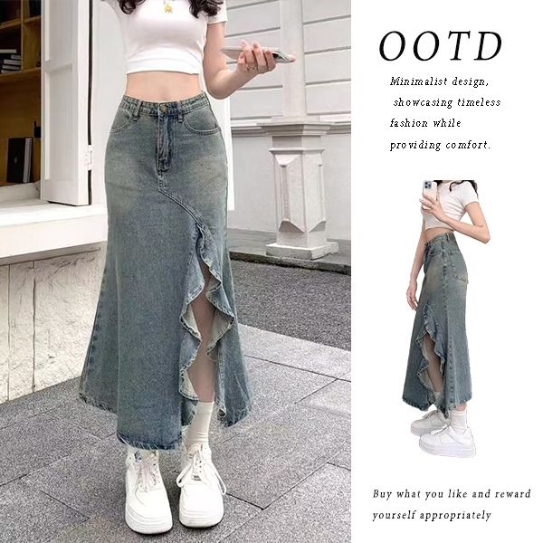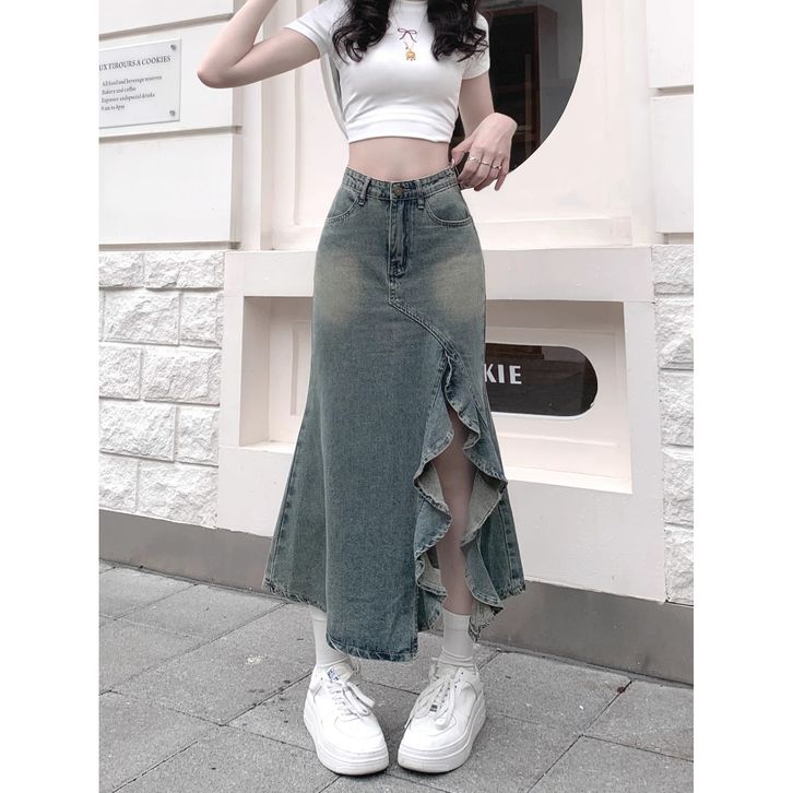 JEANS ROK HIGHWAIST KASUAL SPLIT FISHTAIL ROK MODEL KOREAN NEW PREMIUM BEST SELLER TERLARIS