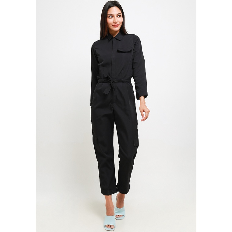LLACES CLOTHING - JUMPSUIT WANITA - CARGO JUMPSUIT - BLACK
