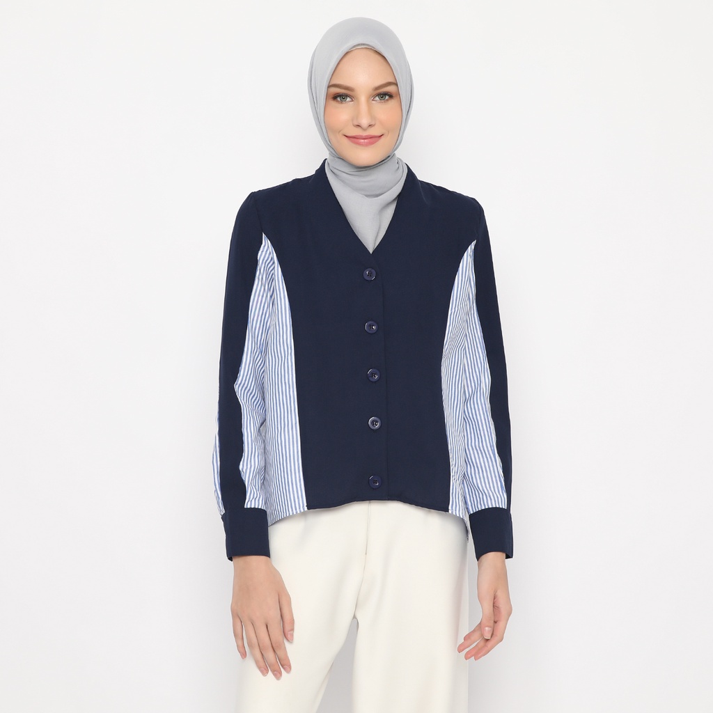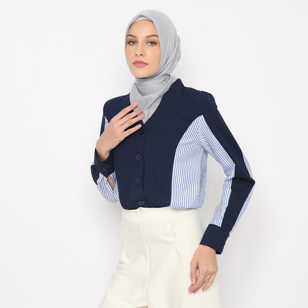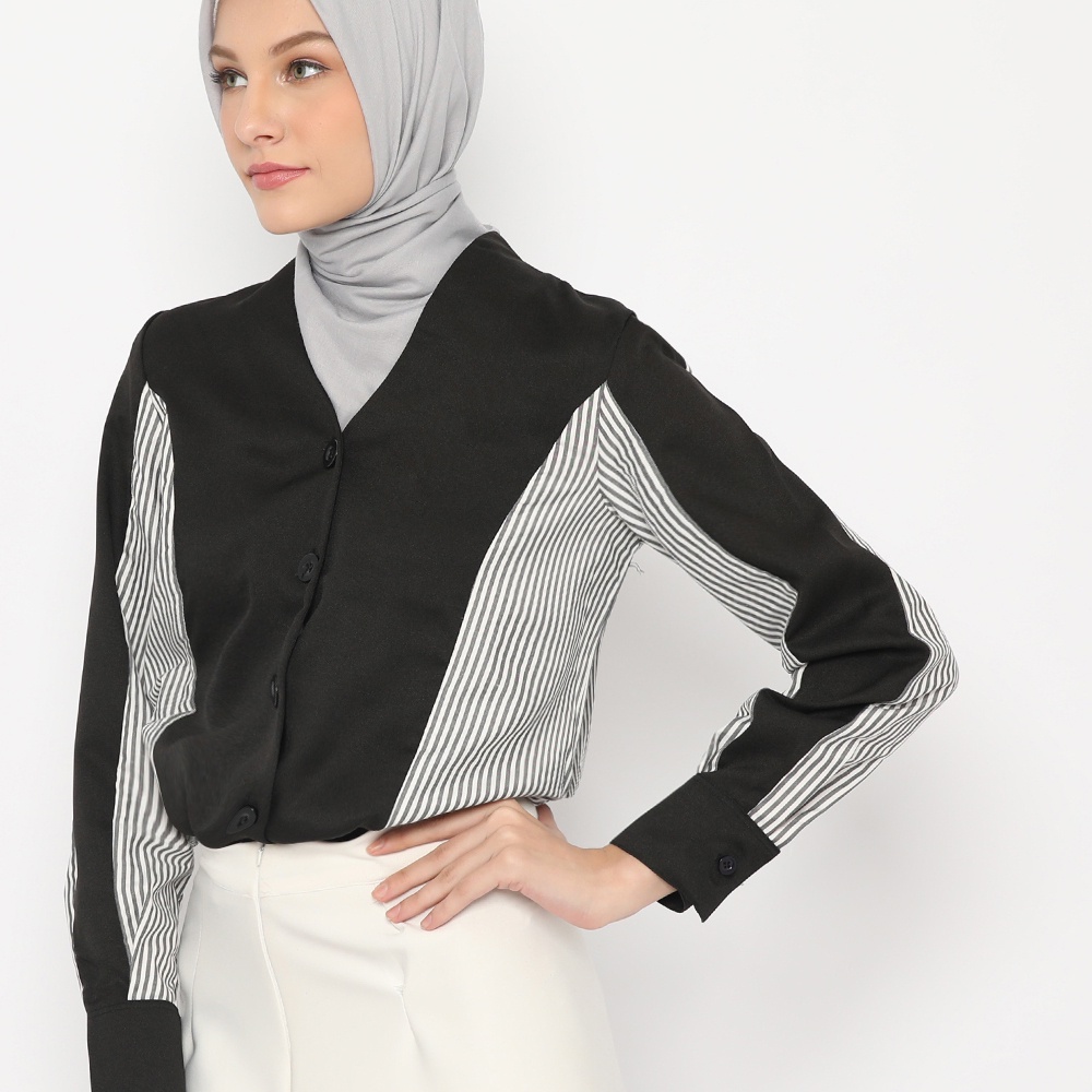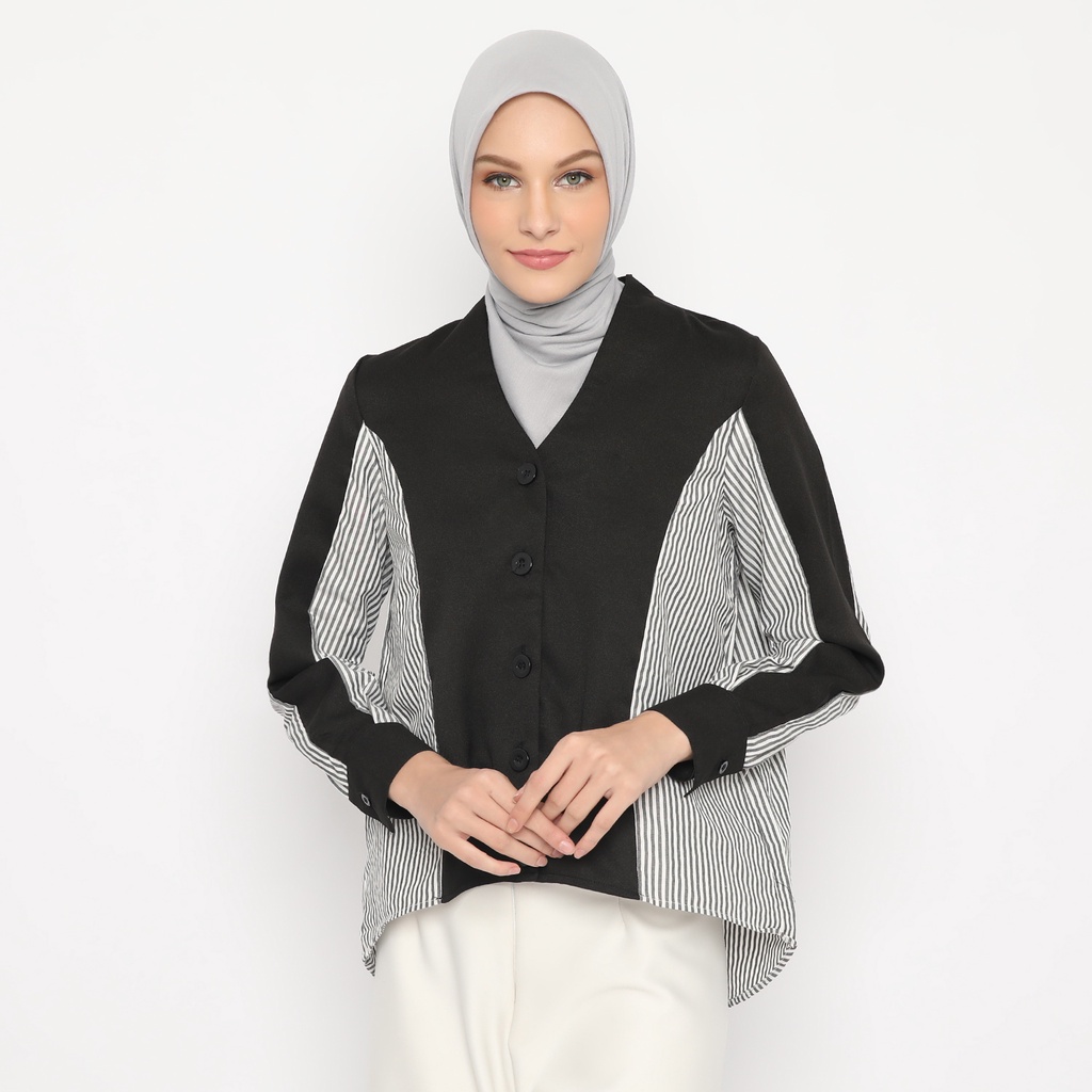 EIZA BY DUAPOLA ATASAN MUSLIM KEMEJA VNECK KOMBINASI 9626