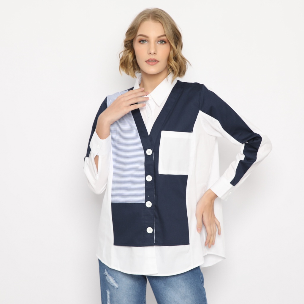 DUAPOLA ATASAN KEMEJA KATUN KOMBI CARDI KOREAN STYLE 9740