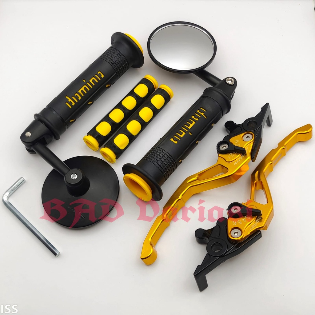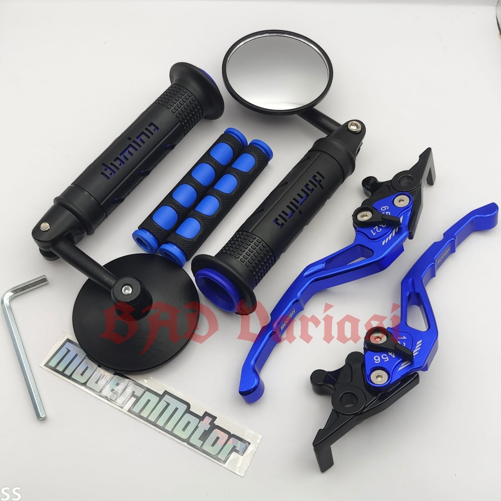 Paket Variasi Motor 4in1 Spion Jalu Cembung Plus Handgrip Domino Handle Variasi Cnc Universal Original