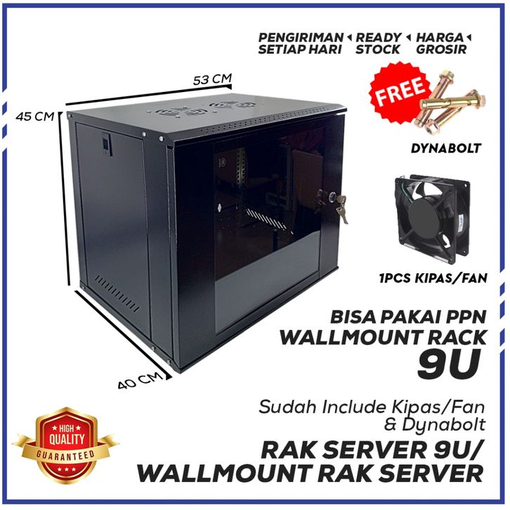 Wallmount Rack Server 9U/Rak Server Ukuran 9U Single Glass Door