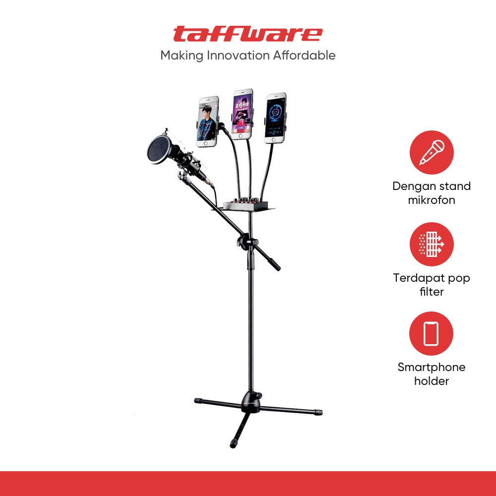MICROPHONE STANDING HOLDER TRIPOD WITH 3 X SMARTPHONEHOLDER
