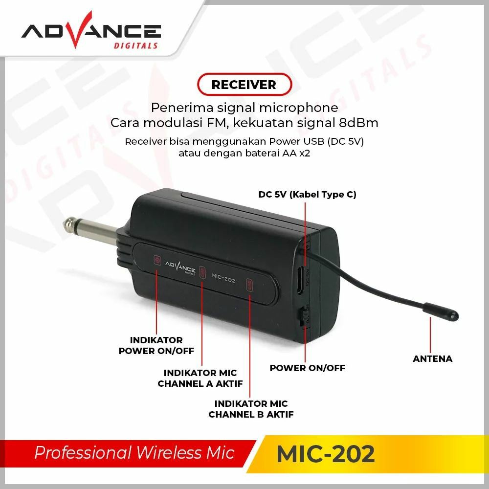 MIC ADVANCE 202 PROFESIONAL 2 MIC WIRELESS MICROPHONE KAROKE MIC DUET
