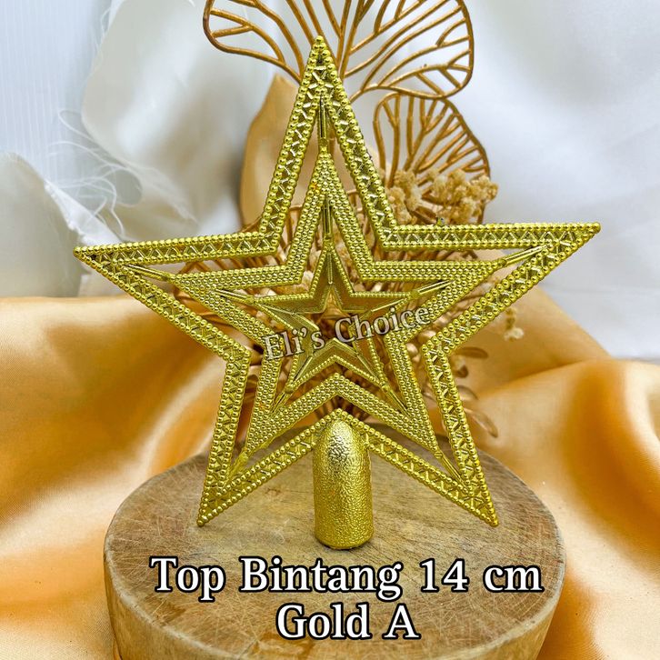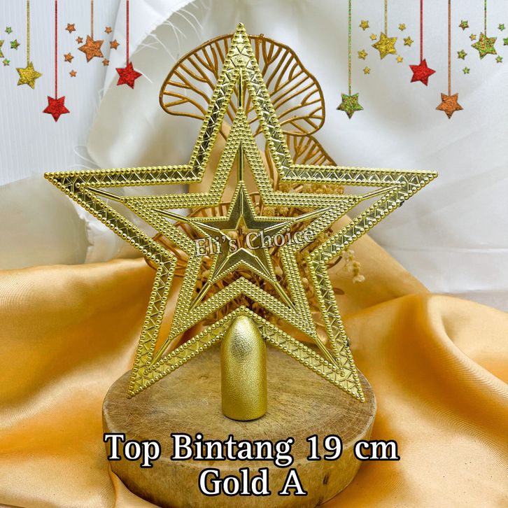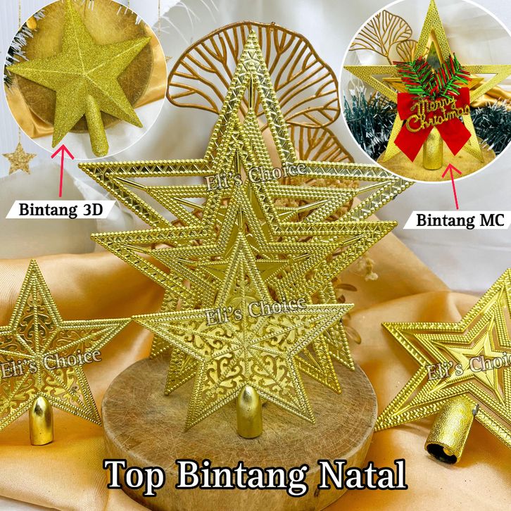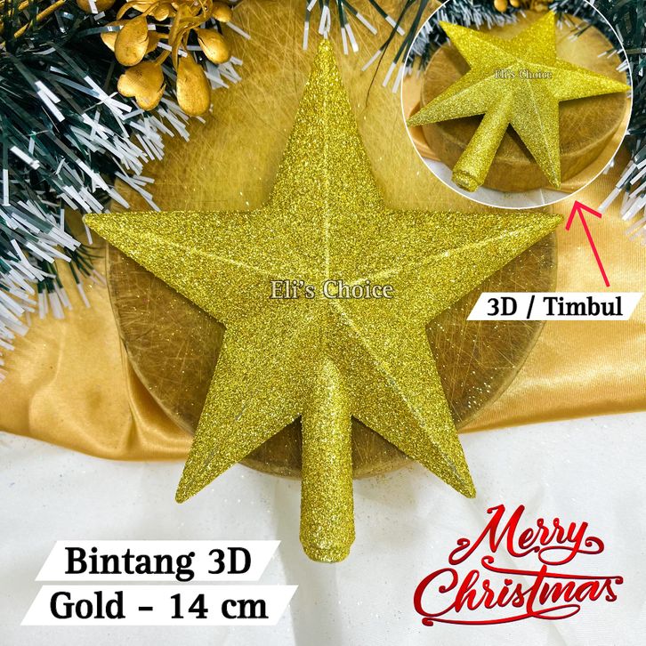 Hiasan Top Bintang Emas Pohon Natal Merry Christmas 3d Glitter Alihome