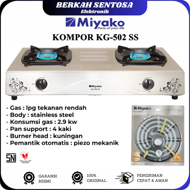 MIYAKO KOMPOR GAS 2 TUNGKU STAINLESS STEEL KG502SS ORIGINAL GARANSI RESMI