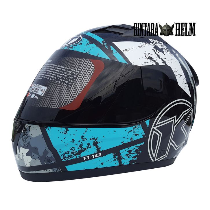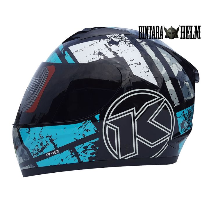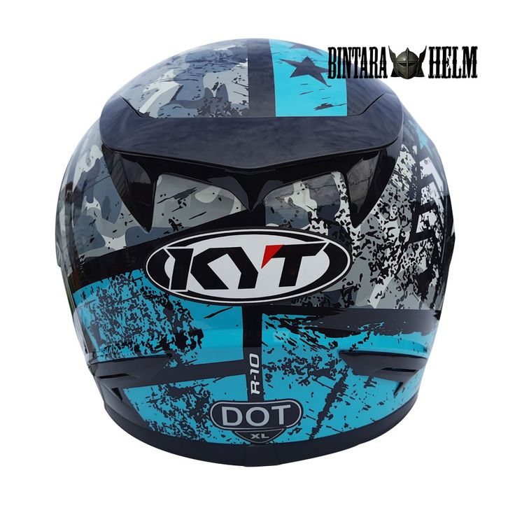HELM KYT ORIGINAL KYT R10 #3 BLACK AQUA BLUE KACA SMOKE ORI HELMET FULL FACE KYT