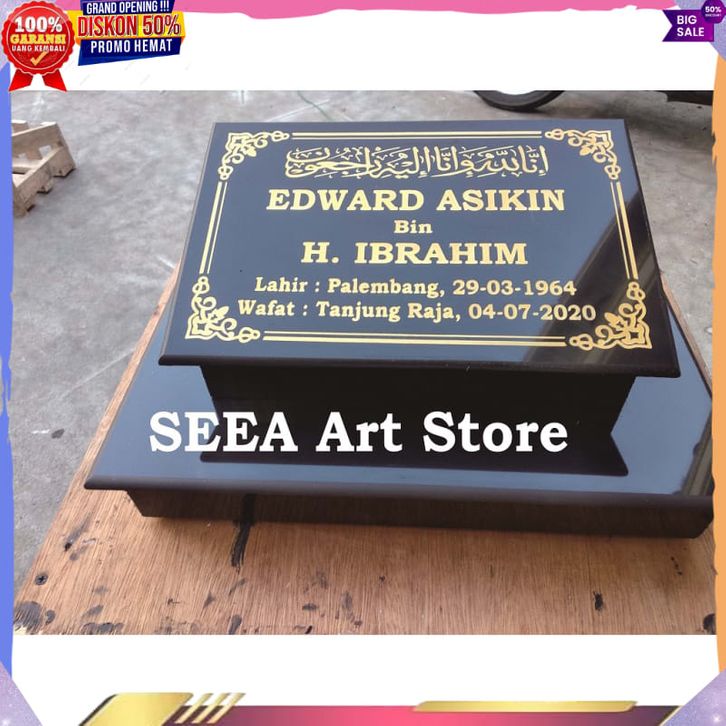 BATU NISAN MAKAM MAESAN FULL GRANIT TILE TOGA HITAM PUTIH JAHUL MURAH PACKING KAYU