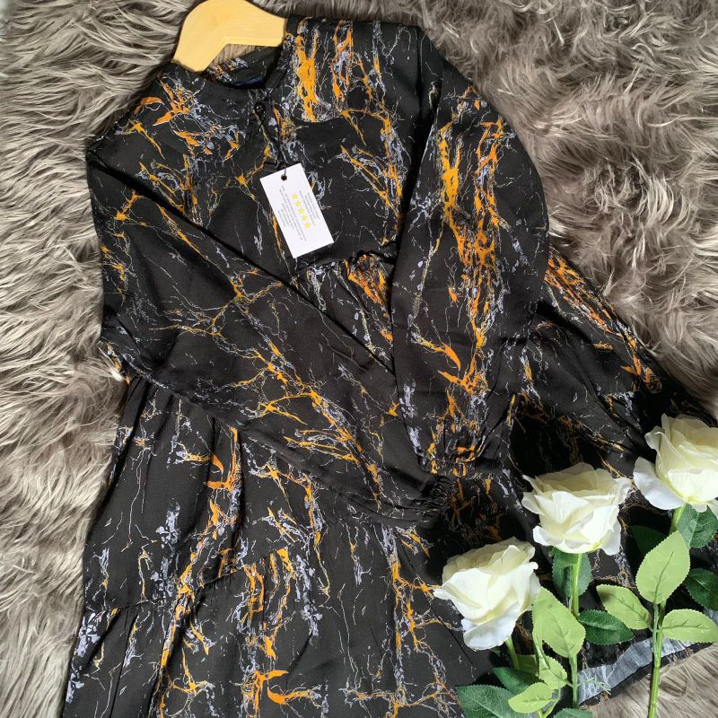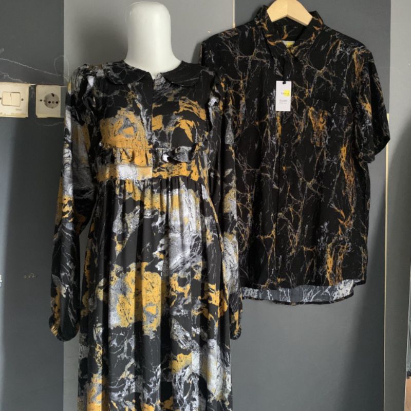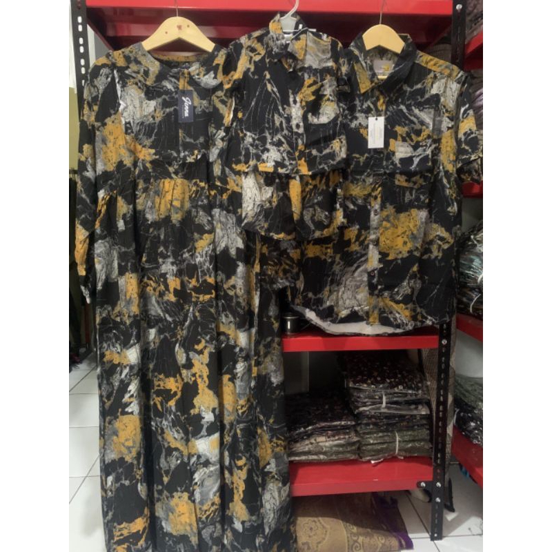 COUPLE KEMEJA GAMIS IBU DAN ANAK BAHAN RAYON VISCOS PREMIUM (HARGA SATUAN) MOTIF BLACK MARBLE