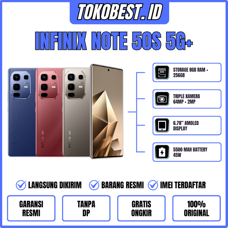 Infinix Note 50s 5G+ 8GB/256GB | Mediatek Dimensity 7300 Ultimate | 5500mAh 45W | Garansi Resmi 12 Bulan