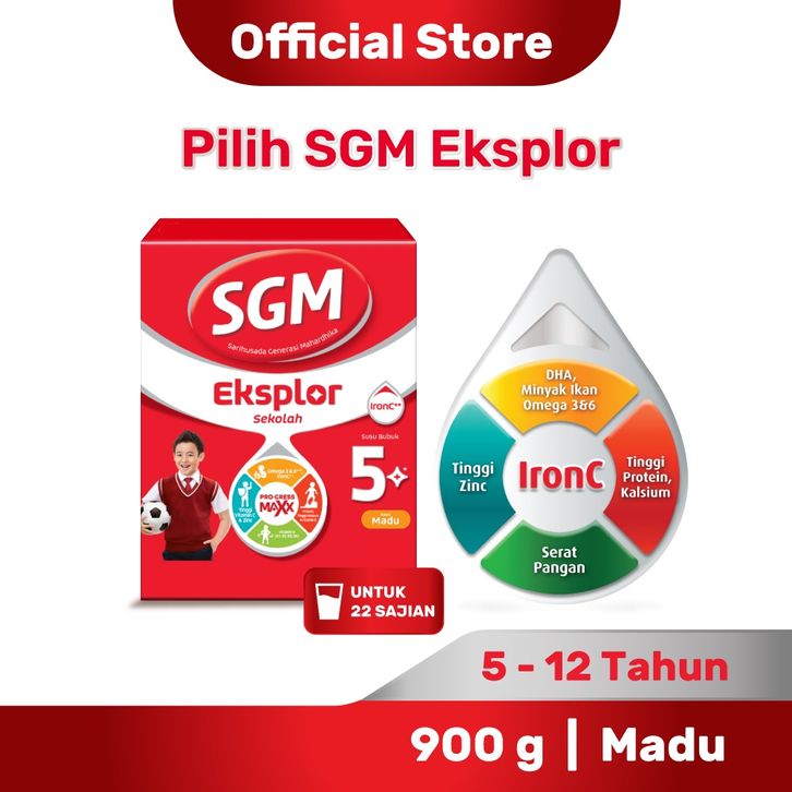 SGM Eksplor 5+ dengan IronC Susu Bubuk Rasa Madu 900GR