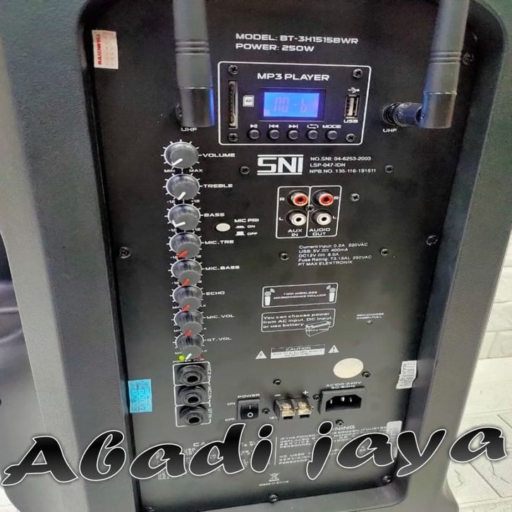 Speaker Portable Wireless Hardwell BT-3H1515BWR Original 15 inch