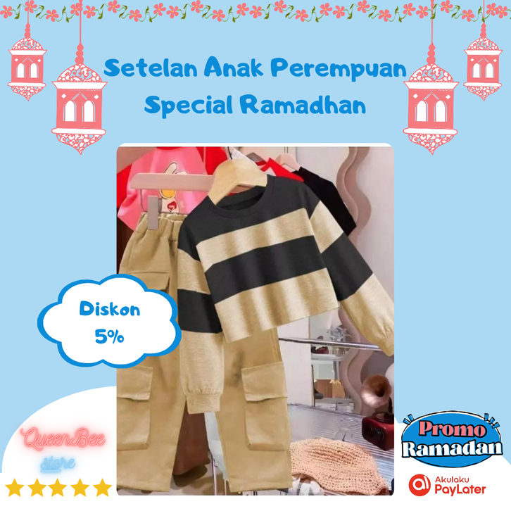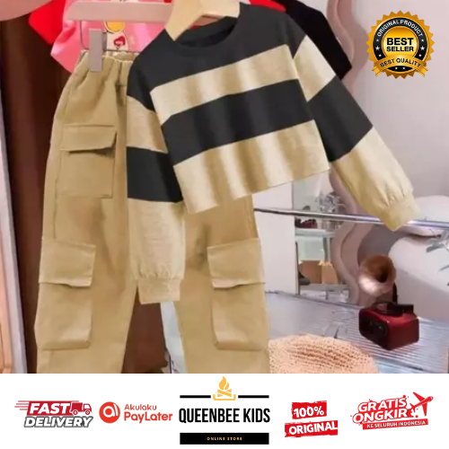 SETELAN SWEATER BAJU ANAK PEREMPUAN USIA 1-8 TAHUN MOTIF SWEATER STRIPE CARGO TERBARU
