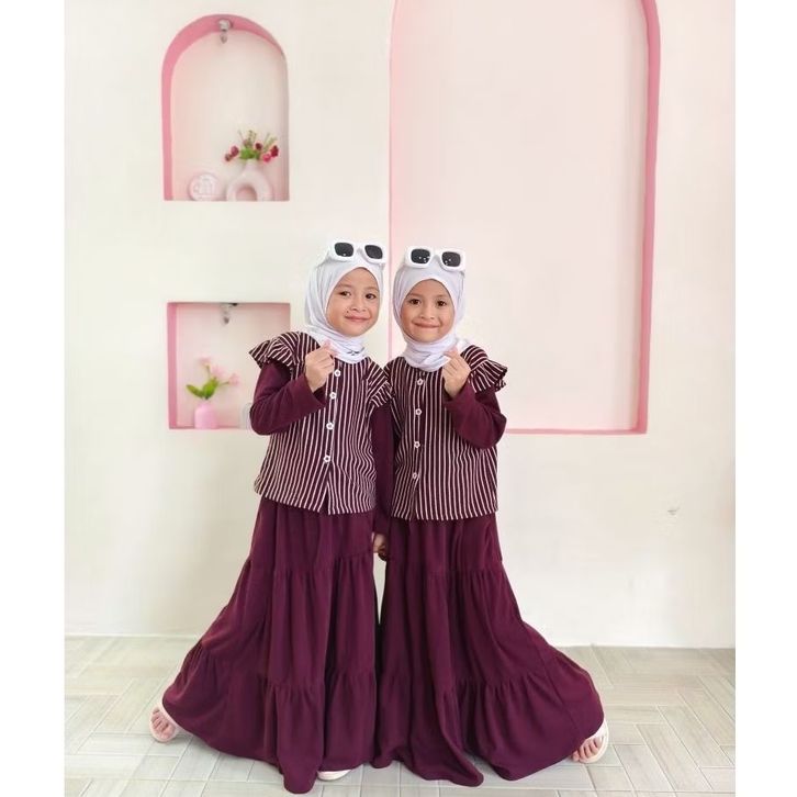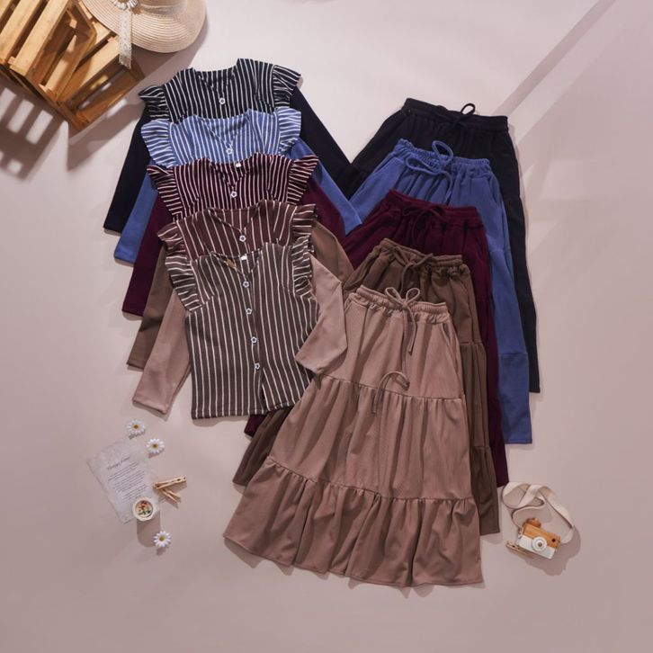 [Star] Setelan Anak Perempuan Usia 1-12Th Oneset Haifa Salur Dan Rok Panjang Korean Looks Terbaru Import