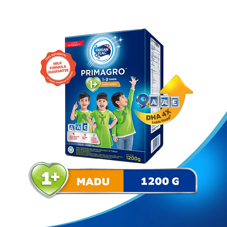 Susu Frisian Flag Primagro 1+ Rasa Madu Kemasan 1200 Gr 1 Box susu Formula Usia 1-3 Tahun