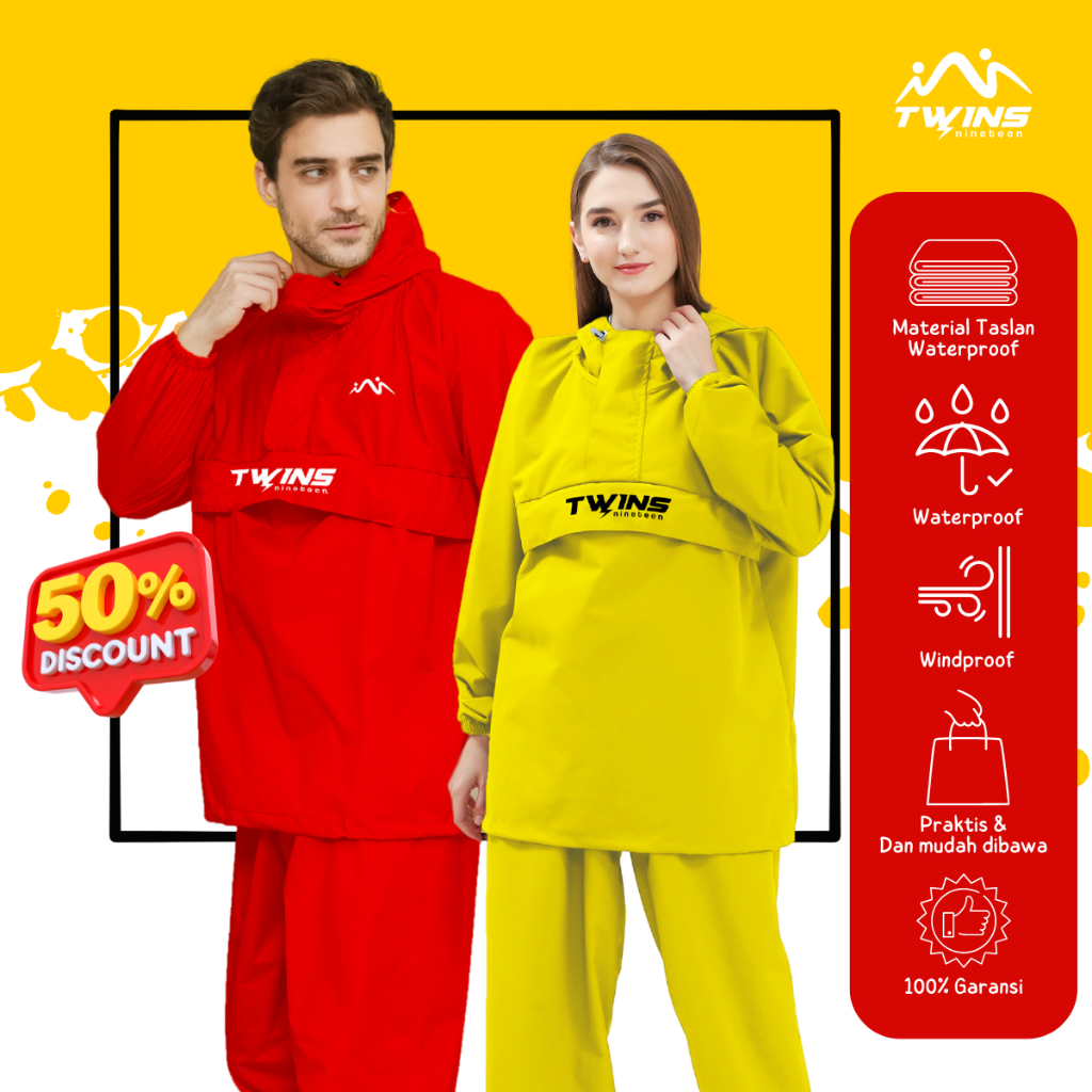 JAS HUJAN KANGGURU / JAS HUJAN TWINS19 SAKU KANGGURU PRIA WANITA DEWASA ANTI AIR BAHAN TASLAN IMPORT RAINCOAT MURAH