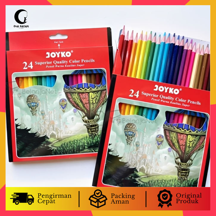 PENSIL WARNA JOYKO ORIGINAL 24 WARNA PANJANG CP-101 ( 1SET/24WRN ) PENSIL GAMBAR ANAK ANAK PENSIL WARNA BAGUS