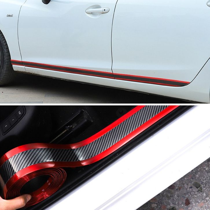 【READY STOCK】Stiker Mobil 3D/Karbon Kevlar Ticker Karets Pelindung Pintu Sill Plate Anti Gores Carbon Fiber Strip