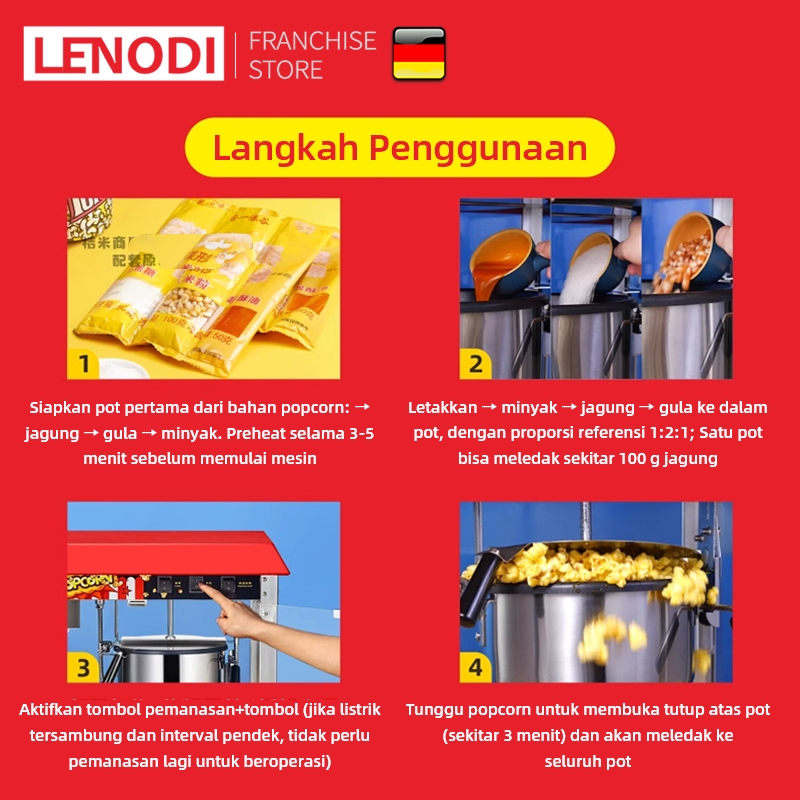 Mesin Popcorn 1400W Mesin Kios Komersial Sepenuhnya Otomatis Mesin Beras Bulat Jagung Kecil Mesin Popcorn Pot Khusus