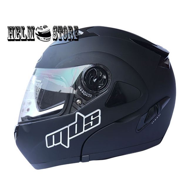 HELM MDS PRO RIDER SOLID BLACK DOFF FULL FACE SNI MDS MODULAR DOUBLE VISOR ORIGINAL
