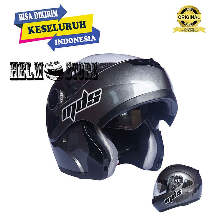 HELM MDS PRO RIDER SOLID GRAPHITE FULL FACE SNI MDS MODULAR DOUBLE VISOR ORIGINAL