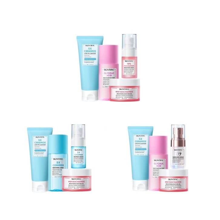 PAKET SKINCARE SKINTIFIC 4PCS GLOWING SET NIACINAMIDE BRIGHTENING MOISTURIZER + WHITENING SERUM + FACIAL CLEANSER+ TONER