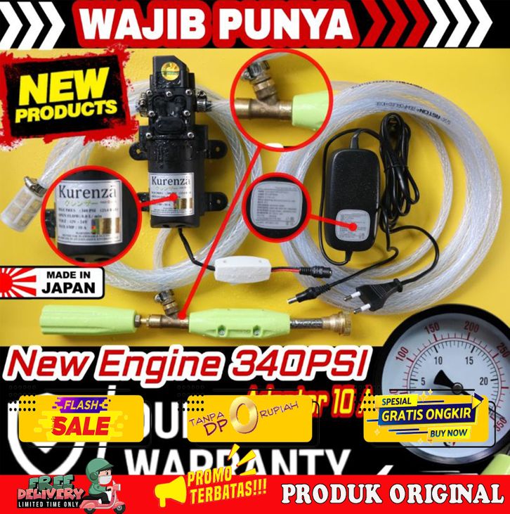 ☢️🉐🇯🇵SET LENGKAP MESIN CUCI MOTOR 340PSI 23.4 BAR 8 LPM POWER SPRAYER ALAT STEAM JET CLEANER AC DC