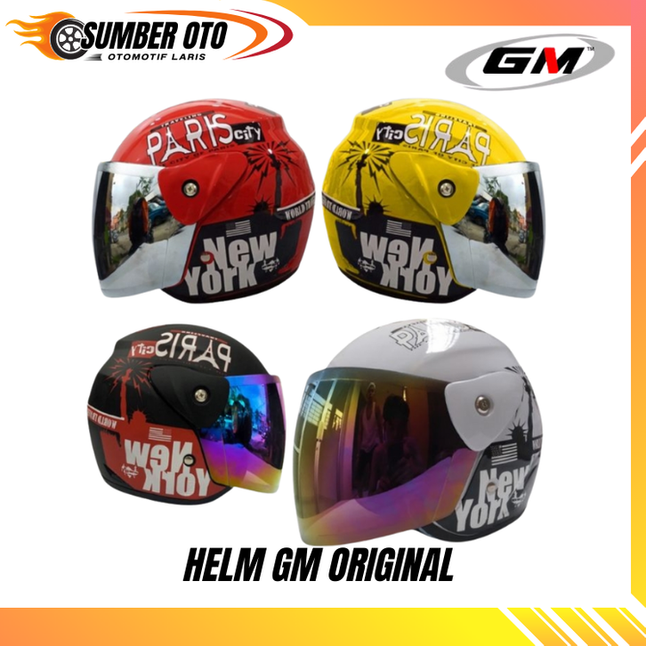 HELM HALF FACE MODEL HELM GM ORIGINAL MOTIF PARIS UNTUK PRIA DAN WANITA DEWASA -HELM SNI MURAH BERKUALITAS