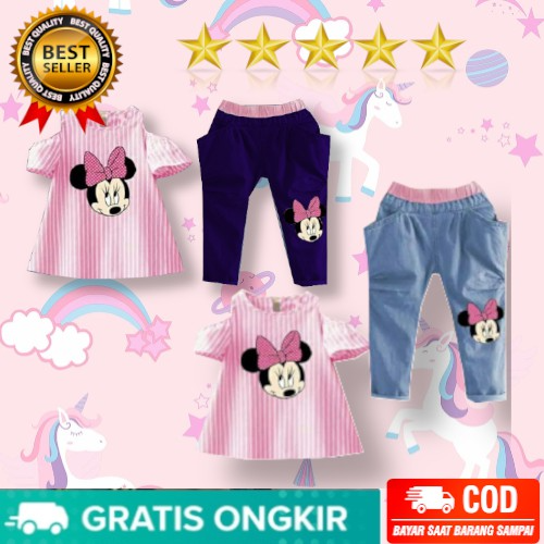 SETELAN ANAK PEREMPUAN IMPORT SETELAN STRIPY MINNIE PINKY SETELAN ANAK PEREMPUAN 1 2 3 4 TAHUN SABRINA